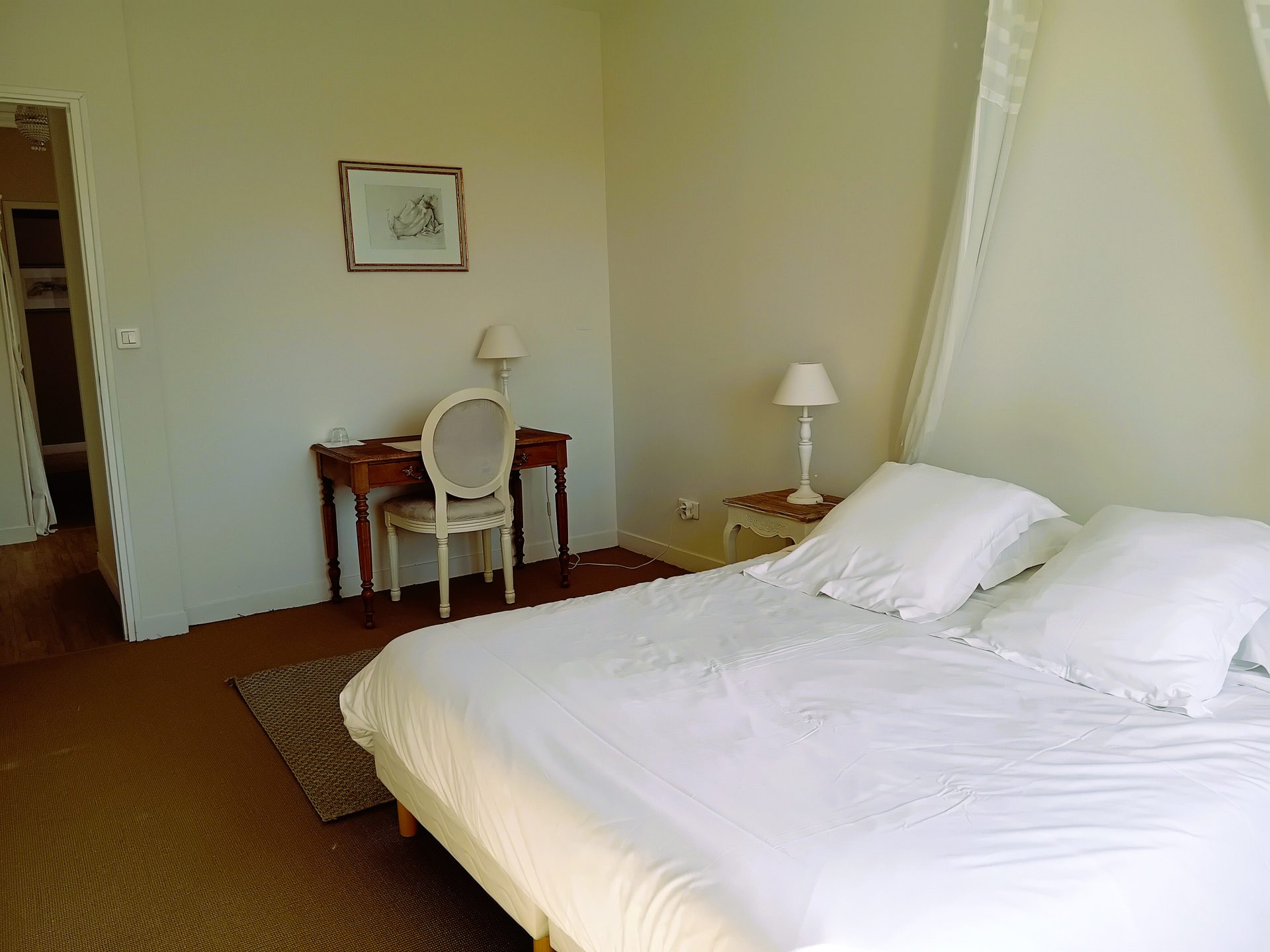 La Chambre Romantique de la Villa Camille vous invite à une parenthèse de douceur, où le temps semble suspendu. Pensée comme un véritable cocon, elle séduit dès les premiers instants par son atmosphère raffinée et apaisante. Ainsi, chaque détail a été soigneusement choisi pour créer un lieu propice à la détente, l’intimité et au lâcher-prise.